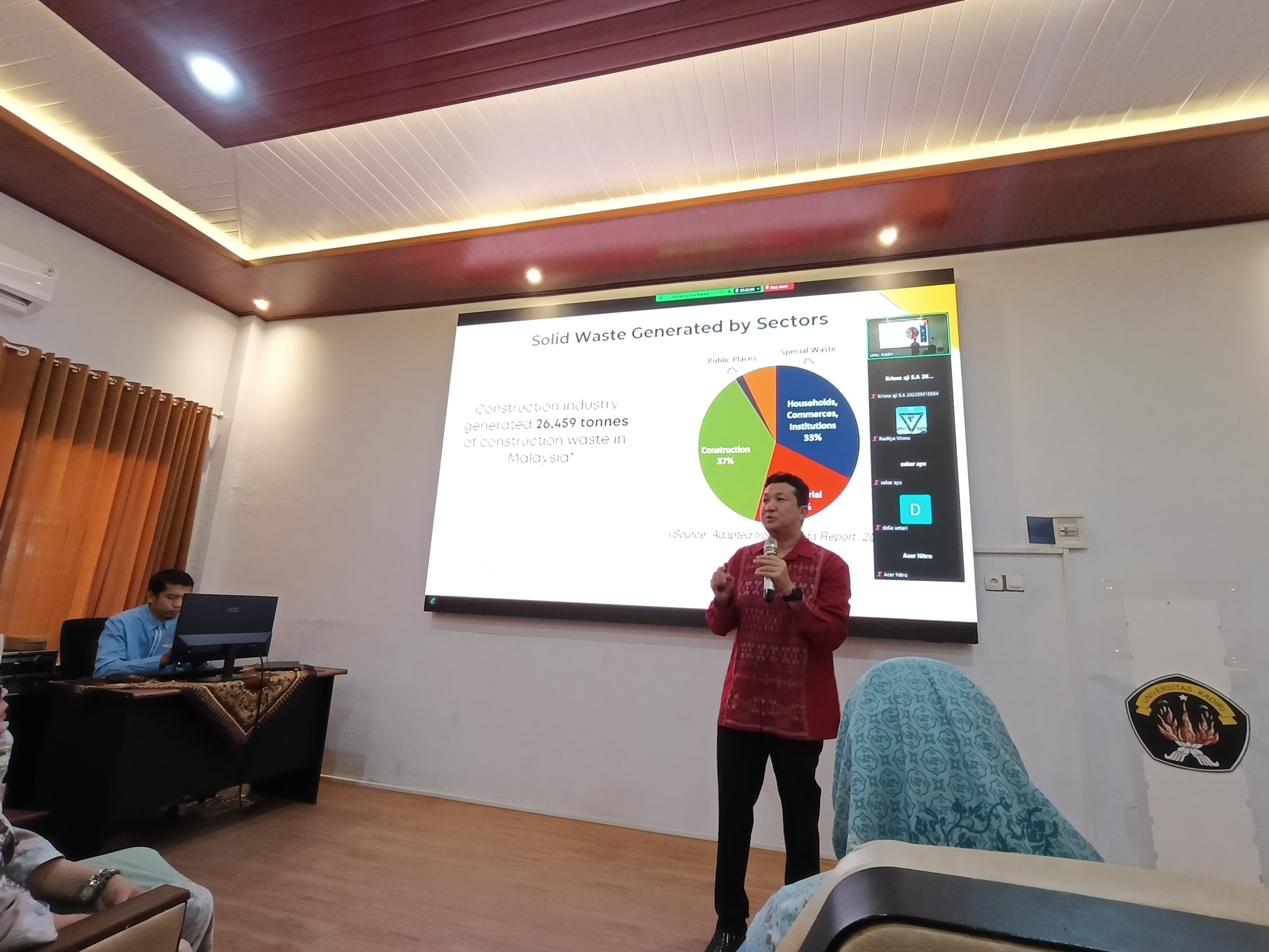 Dalam paparannya, Dr. Riduan menjelaskan pentingnya penerapan konsep Industrialised Building System (IBS) dalam upaya mewujudkan pembangunan yang efisien, berkelanjutan, dan ramah lingkungan. Ia menekankan bahwa integrasi antara sistem modular dan prinsip ekonomi sirkular dapat menjadi solusi inovatif dalam menghadapi tantangan industri konstruksi modern.