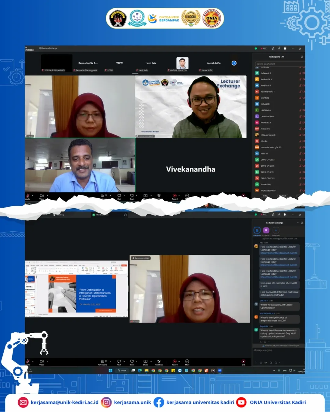 KEDIRI, 16 April 2026 – Program Studi Teknik Industri, Fakultas Teknik, Universitas Kadiri (UNIK) terus menunjukkan komitmennya dalam memperluas jejaring akademik di kancah global. Hal ini dibuktikan dengan terlaksananya kegiatan International Lecturer Exchange yang menghadirkan pakar dari Universitas Kadiri untuk berbagi ilmu di Vivekanandha Educational Institutions, India.